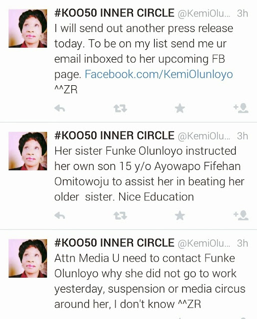 Yesterday Kamify reported that Kemi Olunloyo daughter of former Oyo State Governor was beaten to stupor by her sister and nephew after a said domestic argument. Update from Kemi's publicist, states that her condition is getting worst and that she has lost partial hearing in her left ear. She will post a press release soon on the matter. We wish her quick recovery.